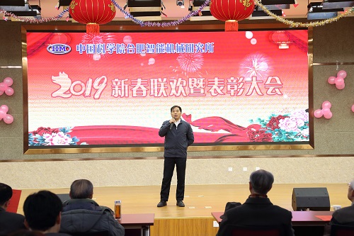 1月21日下午,智能所科研实验楼报告厅内张灯结彩、座无虚席,洋溢着浓郁的节日氛围,智能所一年一度的创新文化盛典“2019迎新年联欢会”在这里如期举行,全所职工、研究生和离退休老干部们欢聚一堂,大家用嘹亮的歌声、真挚的情感迎接新年的到来。所长王儒敬代表所领导班子向全所职工、研究生和老干部们恭贺新年。