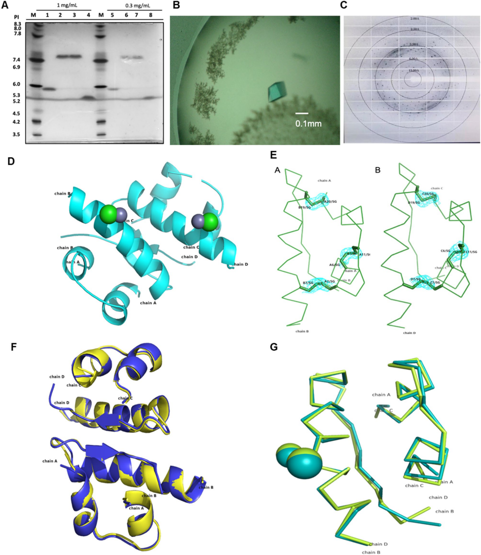 开发安全有效的新型长效胰岛素类似物对推动糖尿病治疗发展具有重要意义。研究团队通过精准的分子设计,在胰岛素类似物A链第21位以甘氨酸取代天冬酰胺,并在B链第31和32位分别引入赖氨酸和精氨酸,成功解决了甘精胰岛素在生产过程中因胰蛋白酶切割产生的杂质问题,显著提升了产品纯度,同时通过优化生产工艺,建立了高纯度insulin lisargine的规模化制备技术。进一步,团队利用X射线晶体学技术在2.0 Å分辨率下成功解析了其三维结构,质谱分析结果证实其分子量与理论值高度一致,验证了产品的高纯度和结构准确性。研究表明,insulin lisargine在I型糖尿病动物模型中表现出卓越的降糖效果,尤其在5 IU/kg剂量下,其降糖效能显著优于甘精胰岛素。长期安全性评估显示,在比格犬模型中未观察到明显毒性反应,符合药品产业化的严格要求。