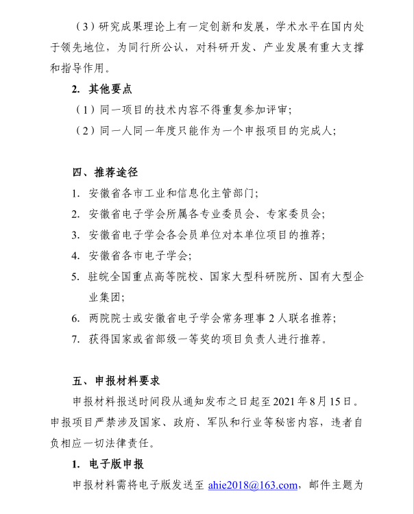附件二:2021 年安徽省电子信息科技奖申报书——技术发明奖(样表)